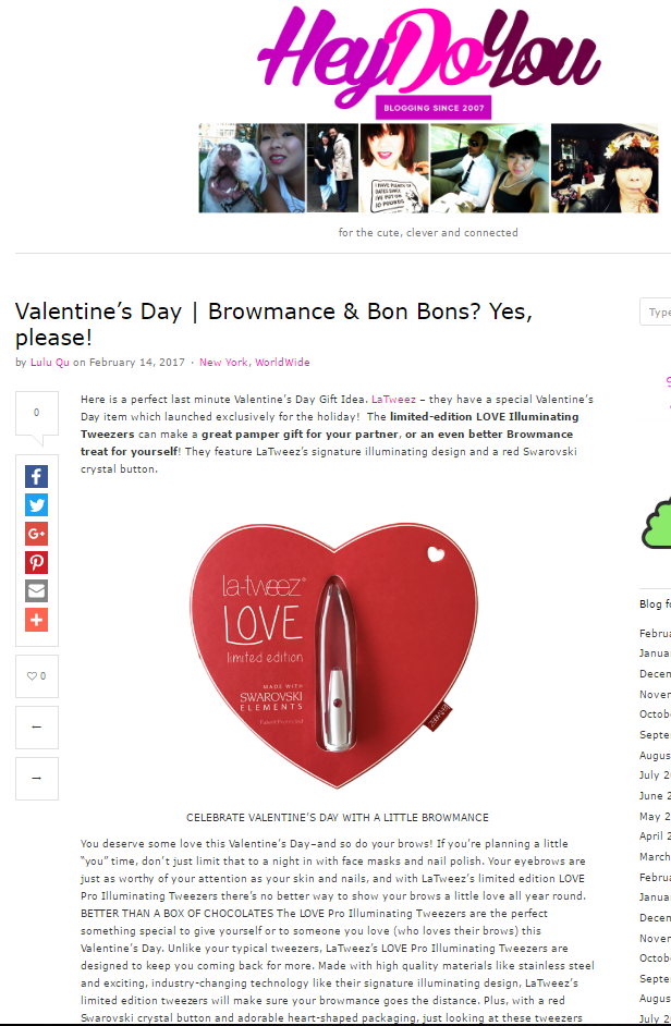 Here is a perfect last minute Valentine’s Day Gift Idea. LaTweez – they have a special Valentine’s Day item which launched exclusively for the holiday! The limited-edition LOVE Illuminating Tweezers can make a great pamper gift for your partner, or an even better Browmance treat for yourself! They feature LaTweez’s signature illuminating design and a red Swarovski crystal button.